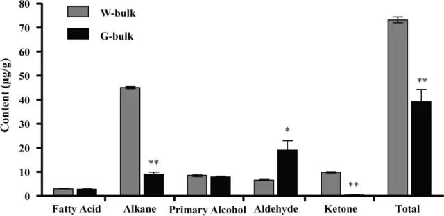 图2 W-bulk和G-bulk叶片中的角质层蜡成分