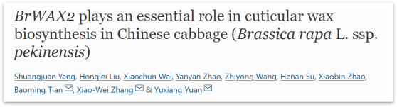 由于表皮蜡质覆盖,大多数陆生植物的外观呈蜡质和白霜状,蜡的损失可能会导致光泽的表型,对于叶菜是个有利的性状。因此,鉴定表皮蜡质缺乏的植物并阐明控制表皮蜡质生物合成的调控机制将有利于农作物改良。河南省农业科学院园艺研究所&郑州大学农学院于《Theoretical and Applied Genetics》(5.699/Q1)发表文章《BrWAX2 plays an essential role in cuticular wax biosynthesis in Chinese cabbage (Brassica rapa L. ssp. pekinensis)》,将有助于更全面地了解植物角质层蜡代谢网络,并有助于加速培育具有鲜明绿色特征的油菜品种。 奥维森提供了转录组测序及分析服务。