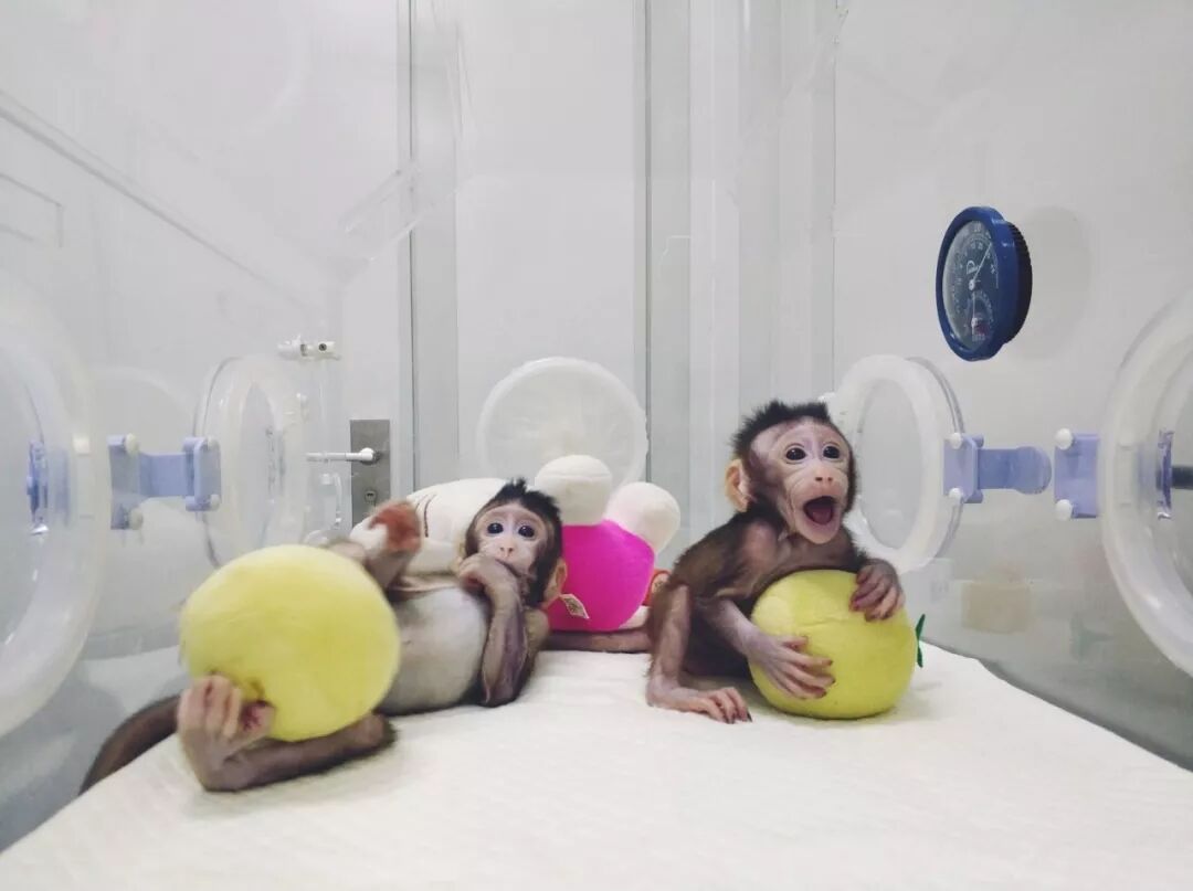 【II】克隆猴的诞生中国科学院神经科学研究所孙强团队24日下午在北京宣布,团队经过5年的不懈努力,突破了体细胞克隆猴的世界难题,成功培育出世界首个体细胞克隆猴。这标志着中国将率先开启以猕猴作为实验动物模型的时代。 2017年11月27日世界上首个体细胞克隆猴“中中”在中科院神经科学研究所、脑科学与智能技术卓越创新中心的非人灵长类平台诞生;12月5日第二个克隆猴“华华”诞生。两只克隆猴均为雌性。在科研人员精心呵护下,截至目前,两只小猴子的各项身体指标均很正常,发育状态良好。