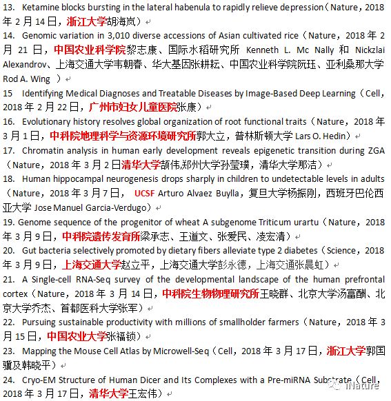 iNature 截止2018年7月14日,中国学者总共在Cell,Science及Nature杂志发表了51篇生物科学相关的文章(2018年)。iNature联合100位PI/教授推出中国CNS生物科学指数(CCBSI)。众专家及iNature团队一致同意,暂时确定的规则如下(同时也欢迎大家留言讨论): 【1】所有的文章是Article/Letter/Report研究型文章,不包括综述; 【2】Cell,Natue及Science单篇文章的权重设为10; 【3】如果通讯作者挂了多个单位,只看排名最靠前的1个单位; 【4】如果通讯作者只有一个,那么该第一单位得分是10分; 【5】如果通讯作者存在多个,那么第一通讯作者单位按其他非第一通讯作者单位的2倍计算(比如有2个通讯作者,那么第一通讯单位得分6.7,非第一通讯作者单位得分3.3;如果有3个通讯作者,则第一通讯单位得分5,其他2个非第一通讯单位各得分2.5;之后以此类推); 【6】如果通讯作者单位与第一单位不一样(经过估计,这大约会出现1-2%的概率),那么第一单位记为2倍积分; 【7】通讯作者越多,第一通讯单位得分越低。