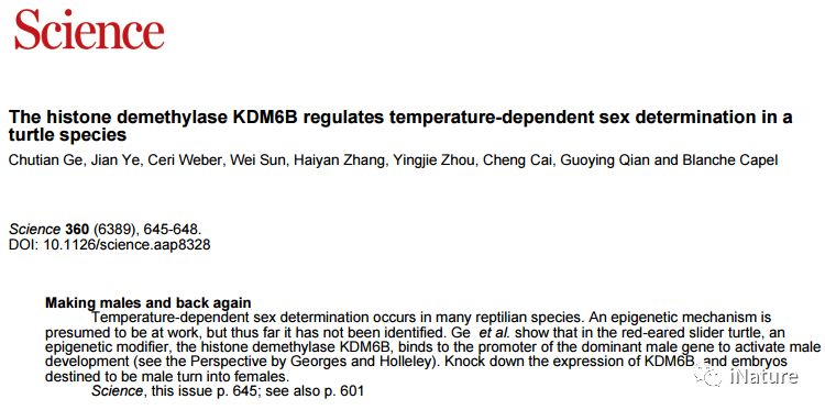 【III】组蛋白去甲基化酶KDM6B调节海龟物种的温度依赖性性别决定