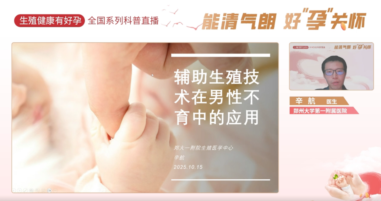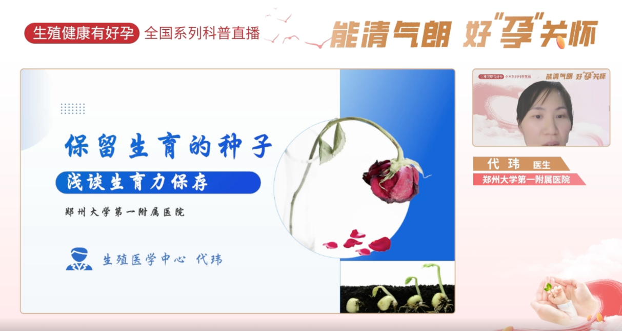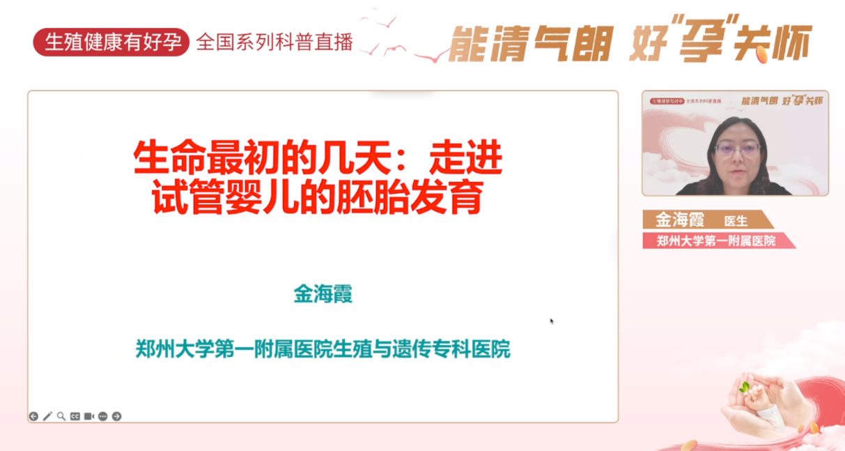 随着国家生育支持政策的持续推进,从辅助生殖纳入医保到育儿补贴扩围,一系列举措为家庭生育减负。但与此同时,不少群众仍面临生殖健康知识匮乏的问题。育龄人群不孕不育防治临床实践指南(2024)》提到,根据我国生殖健康调查的数据,中国不孕症的患病率从2007年的11.9%上升到2010年的15.5%。截至2020年,不孕症患病率进一步上升至17.6%,据此估计,目前我国约有3300万对育龄夫妇面临不孕问题的困扰,因此也急需专业、权威的科普指导。 为了深入贯彻落实《“健康中国2030”规划纲要》,推进我国女性生殖健康事业的发展,提升广大人民对生殖健康的全新认识,以及对不孕不育诊治新理念、新技术的正确了解。2025年10月15日,由远大医药赞助,巢内网推出“能清气朗,好‘孕’关怀:生殖健康有好孕全国系列科普直播”活动。 本场直播活动邀请了6位郑州大学第一附属医院妇产、生殖领域专家进行科普专题讲座及患者答疑讨论,共同推动妇产、生殖医学科普知识与新技术的交流传播,为建设健康中国、构建人类卫生健康共同体贡献智慧和力量。特邀嘉宾有:郭艺红医生、金海霞医生、代玮医生、鲍晓医生、辛航医生、王芳医生,本次活动反响空前强烈,吸引了众多网友参与互动。 金海霞医生进行科普分享
