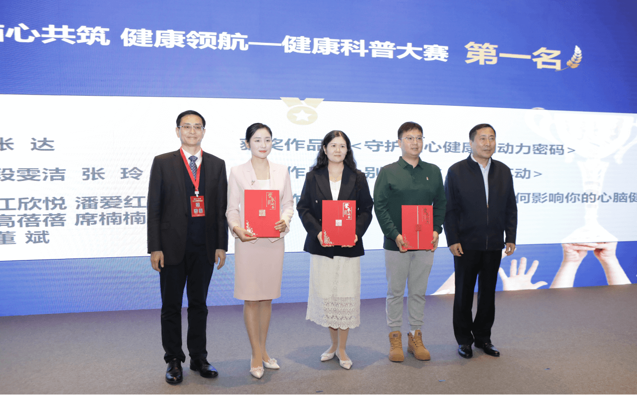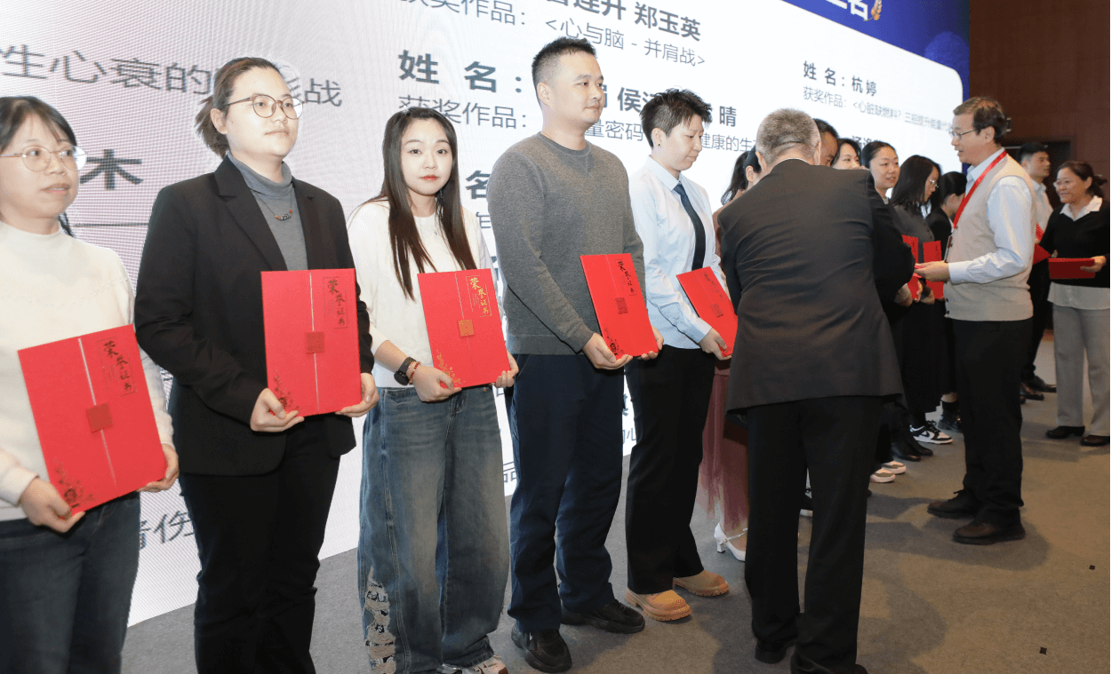 华扬教授、岳伟教授、王蕾教授和谭嘉主任为第二名获奖者颁奖 《身体缺能量,心脑先遭殃!》、《心与脑-并肩战》、《心脏缺燃料?三招提升能量代谢》等15项作品获得本次健康科普大赛第三名。