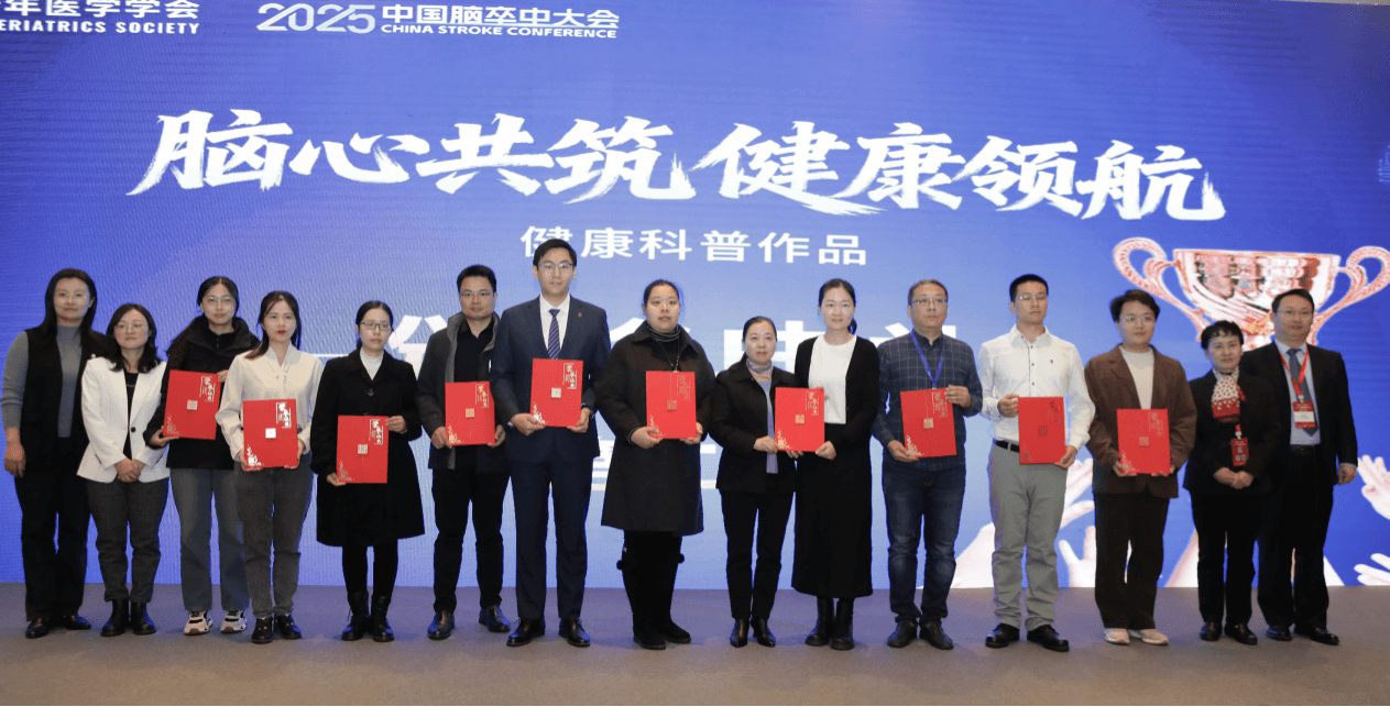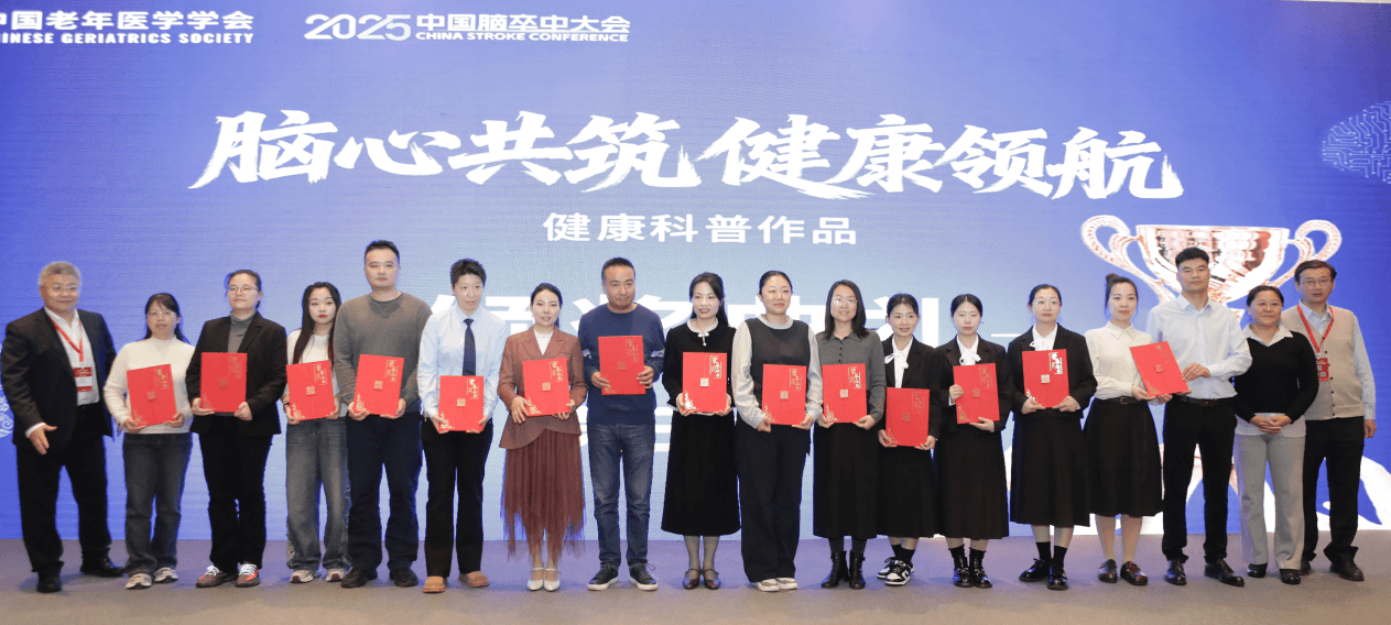 为贯彻《健康中国行动(2019—2030年)》,提高群众卒中防治知识知晓率,推进卒中早期预防、诊治和康复,近日“脑心共筑 健康领航 — 健康科普大赛”落下帷幕,并于2025年11月8日举办颁奖典礼,中国工程院吉训明院士、首都医科大学宣武医院管仲军书记、首都医科大学宣武医院华扬教授、首都医科大学宣武医院李思颉教授、天津市环湖医院副院长岳伟教授、首都医科大学宣武医院王蕾教授、健康报社谭嘉主任、北京邮电大学人工智能学院刘勇教授、首都医科大学宣武医院徐希奇教授、首都医科大学宣武医院费晓璐、首都医科大学宣武医院杨士伟教授等专家亲临颁奖现场,为本次科普征集活动画上了圆满句号。 本次活动由国家老年疾病临床医学研究中心、首都医科大学宣武医院、中国老年医学学会脑血管病分会主办,首都医科大学宣武医院宣教中心、首都医科大学宣武医院脑心病学中心承办,国家卫健委卒中防治百万减残工程专家委员会、中国老龄健康促进工程专家委员会、国家神经疾病医学中心指导,远大医药(中国)有限公司赞助支持。本次活动凝聚行业中坚力量,构建 “专家引领、全民参与、多方联动” 的健康科普生态,让“脑心健康”理念深入人心。 专家齐聚赋能 共话科普新方向